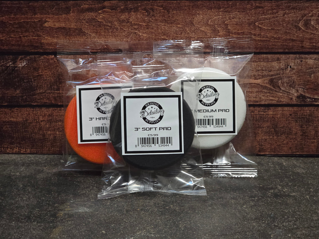 Bristol Detailing Supplies 3 Inch Cutting Pad delivers professional-grade paint correction in three distinct grades. The soft pad suits light swirls and minor imperfections with minimal paint removal, whilst the medium pad balances correction speed with paint safety for general defects. The hard pad tackles stubborn scratches and oxidation, removing more material per pass for aggressive correction work. Each grade features a precisely engineered foam structure that maintains consistent cutting action across the pad surface, reducing the risk of holograms and buffer trails. Compatible with standard 3-inch backing plates, these pads integrate seamlessly into any detailing workflow. Choose your grade based on paint condition and desired correction intensity.